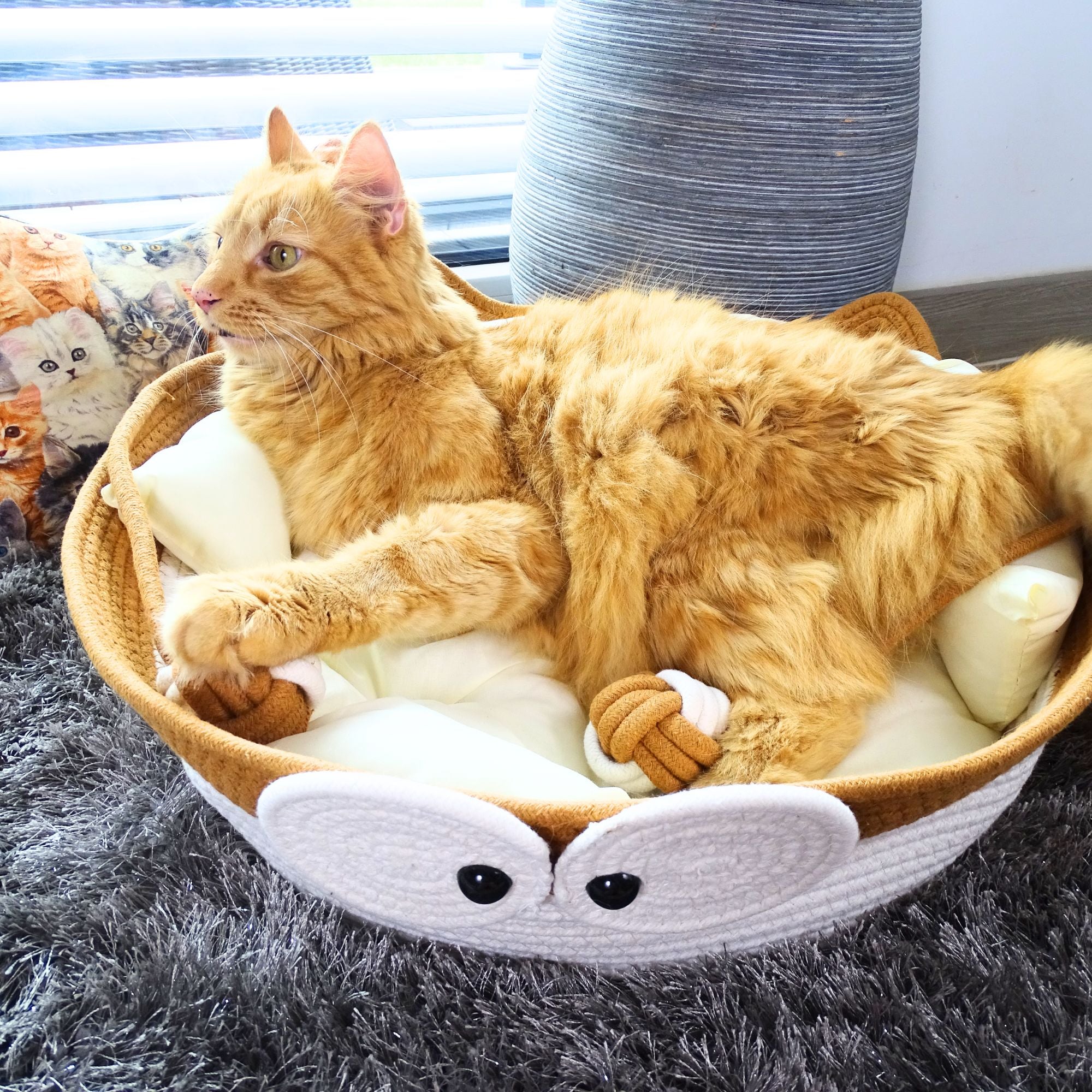 Ausgestattet mit einem weichen Kissen, bietet das Katzenbett das perfekte Liegegefühl zu jeder Jahreszeit. Im Winter hält es deine Katze wohlig warm, während es im Sommer angenehm kühl bleibt.