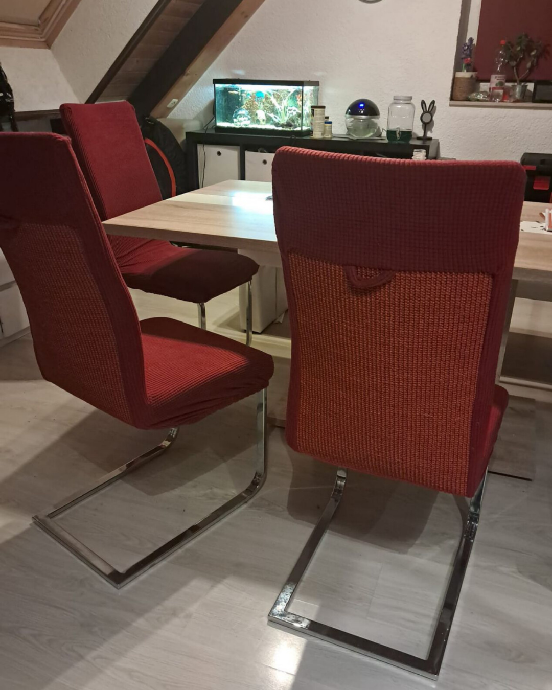 Unsere Stuhlhussen bieten einen effektiven Schutz vor Kratzern, Abnutzung und anderen Beschädigungen, die durch das Kratzen deiner Katze entstehen. Sie bewahren die Oberfläche der Stühle vor Schäden und erhalten ihre ästhetische Qualität.