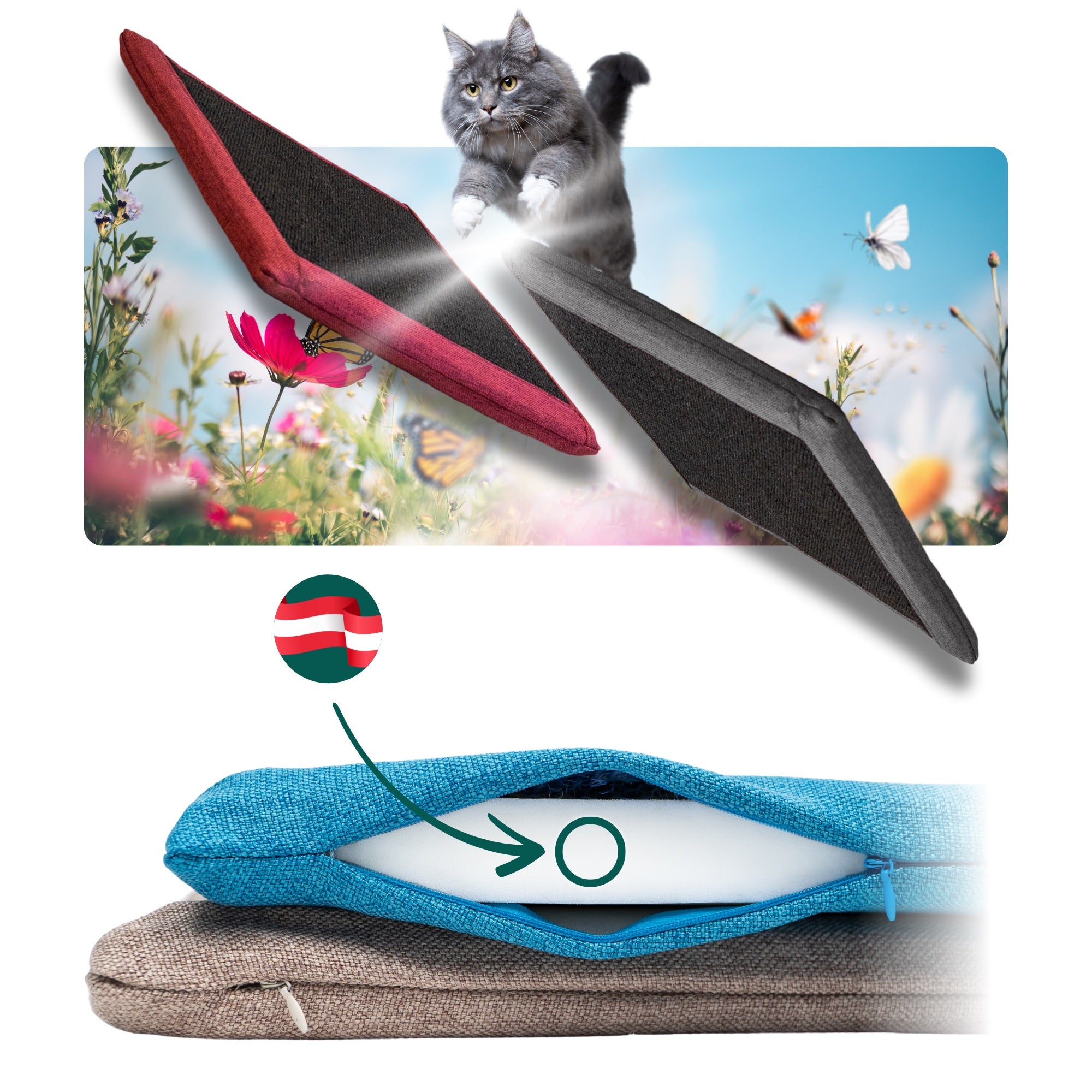 ✅ Deine Vorteile: Durch eine stilvoll integrierte Sisal-Kratzmatte im Rückenteil, wird das natürliche Kratzbedürfnis deiner Katze befriedigt und deine Möbel elegant geschützt. Entwickelt in Österreich.