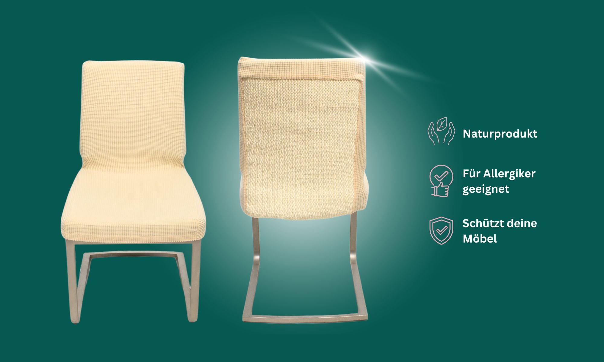 Unsere Stuhlhussen bieten einen effektiven Schutz vor Kratzern, Abnutzung und anderen Beschädigungen, die durch das Kratzen deiner Katze entstehen. Sie bewahren die Oberfläche der Stühle vor Schäden und erhalten ihre ästhetische Qualität.