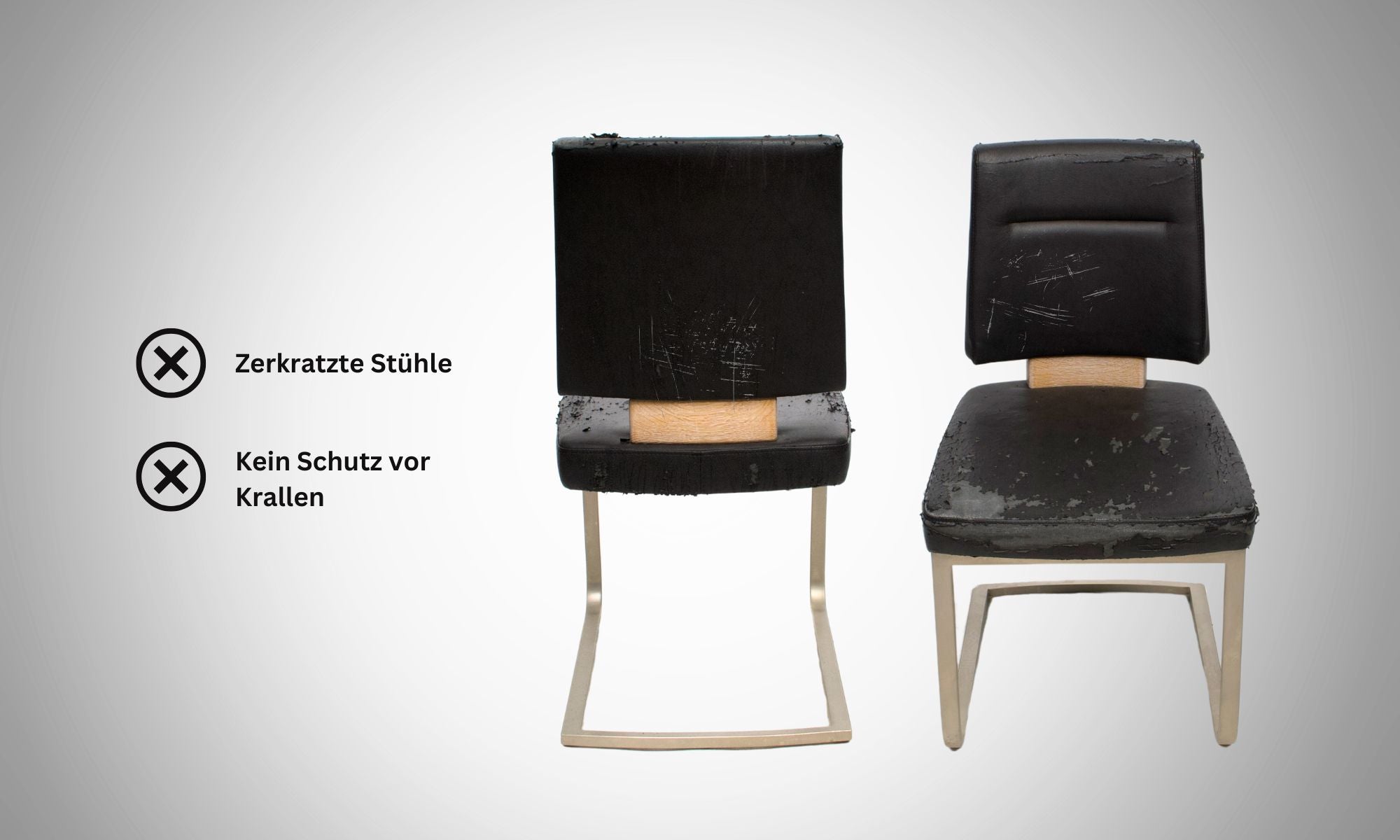 Unsere patentierten Stuhlhussen sind die Lösung für zerkratzte Stühle durch Katzen.